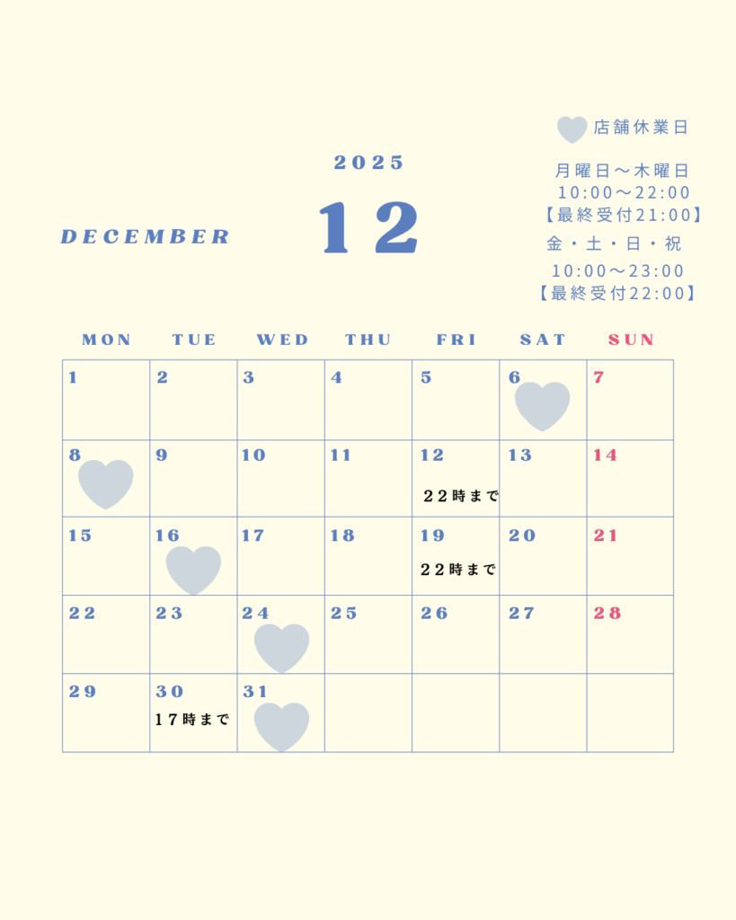 12月休業日 ▶︎